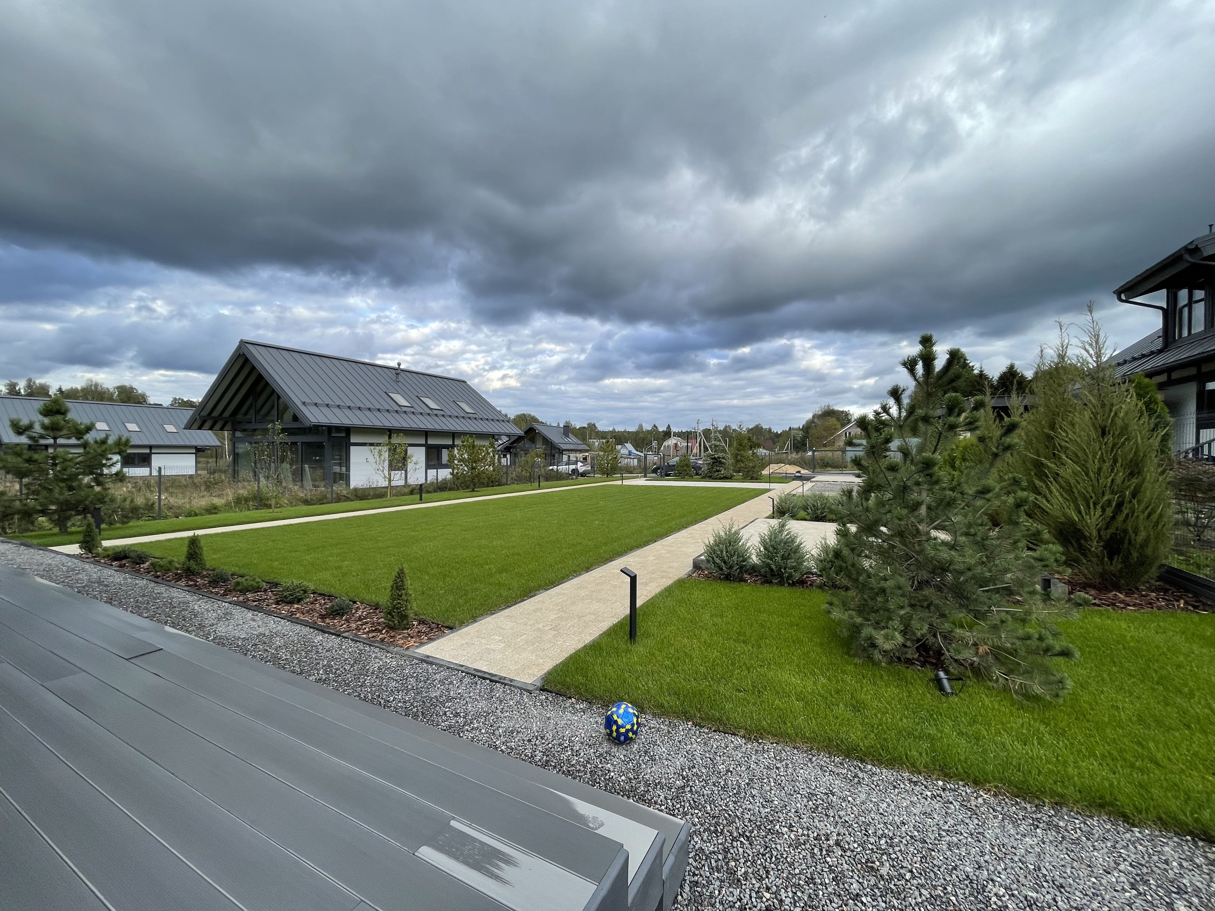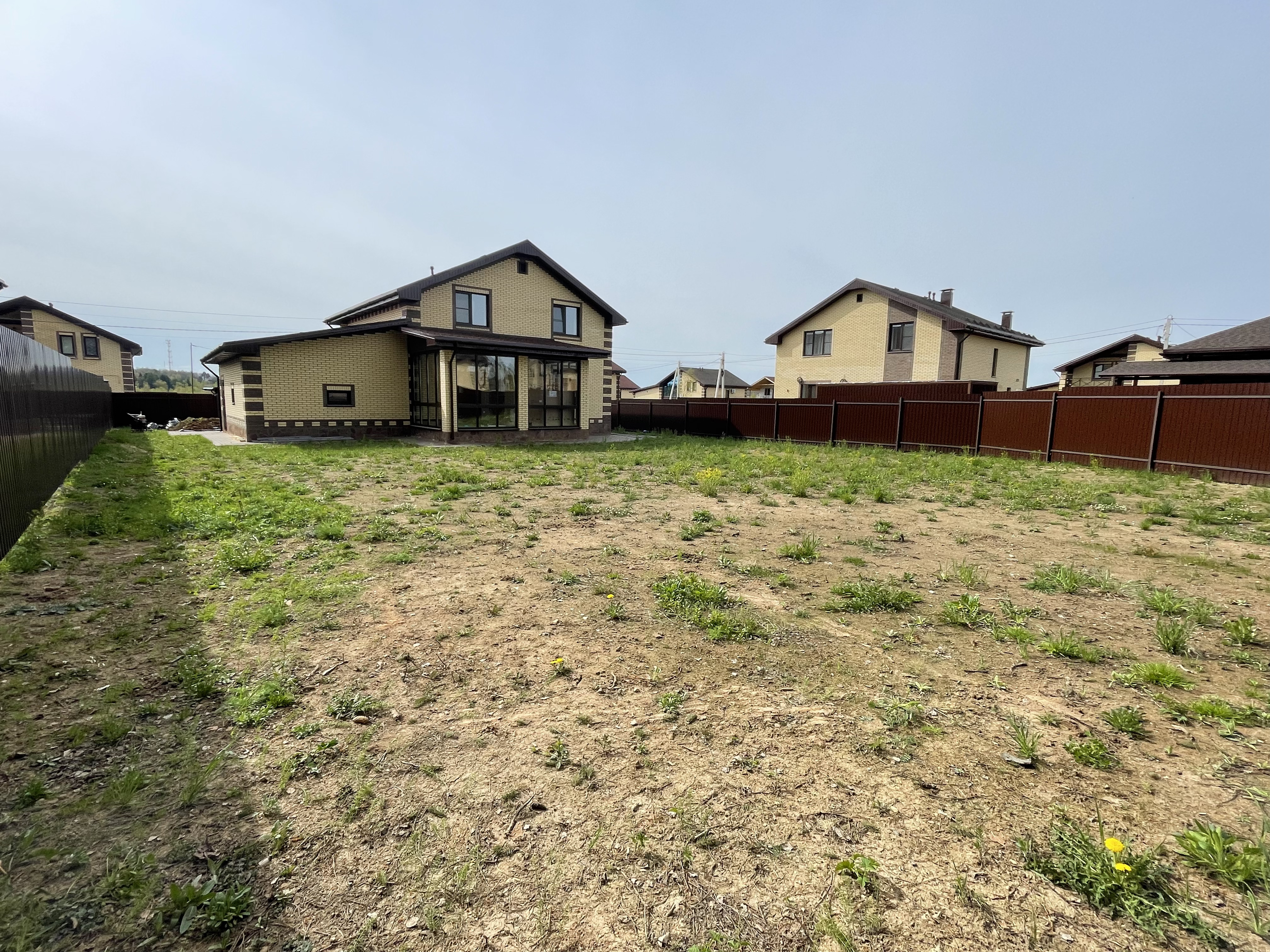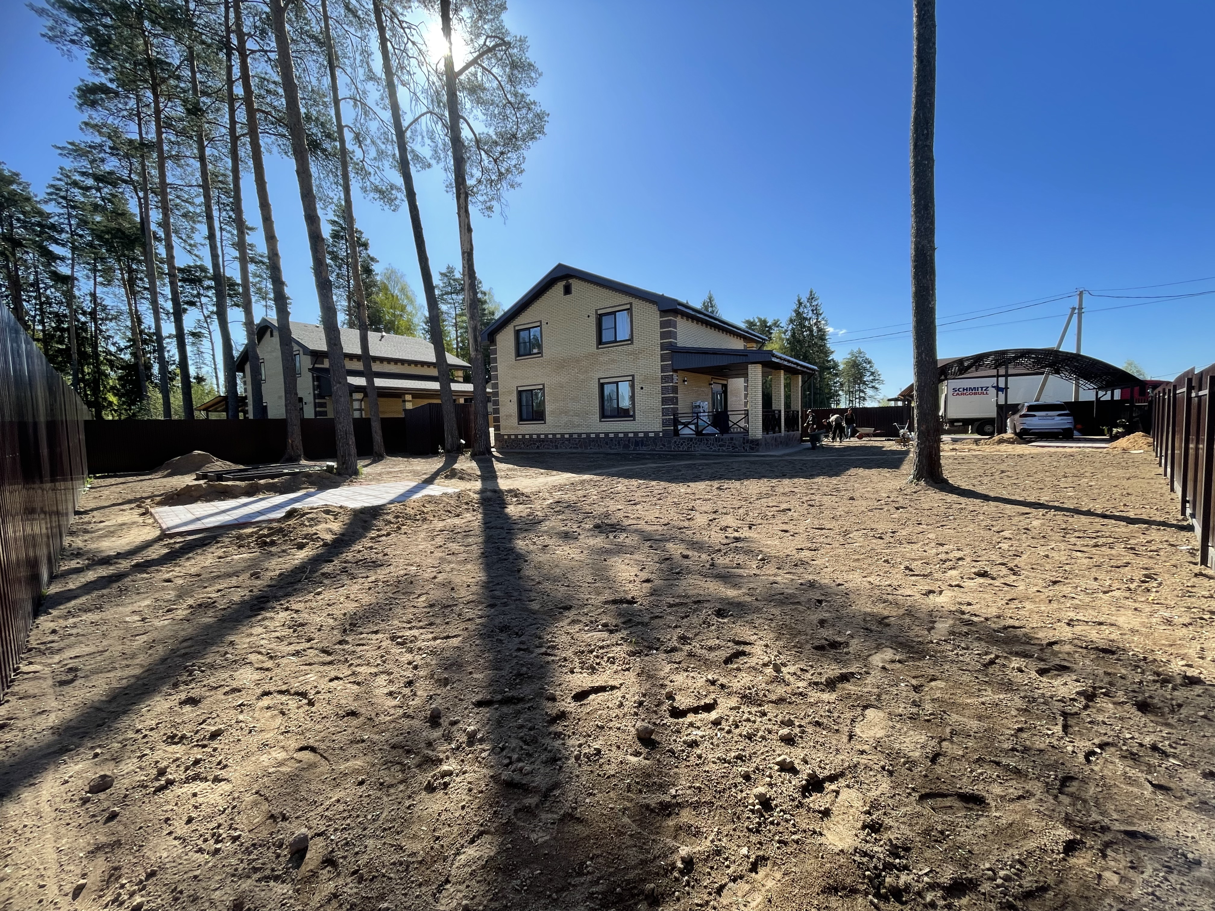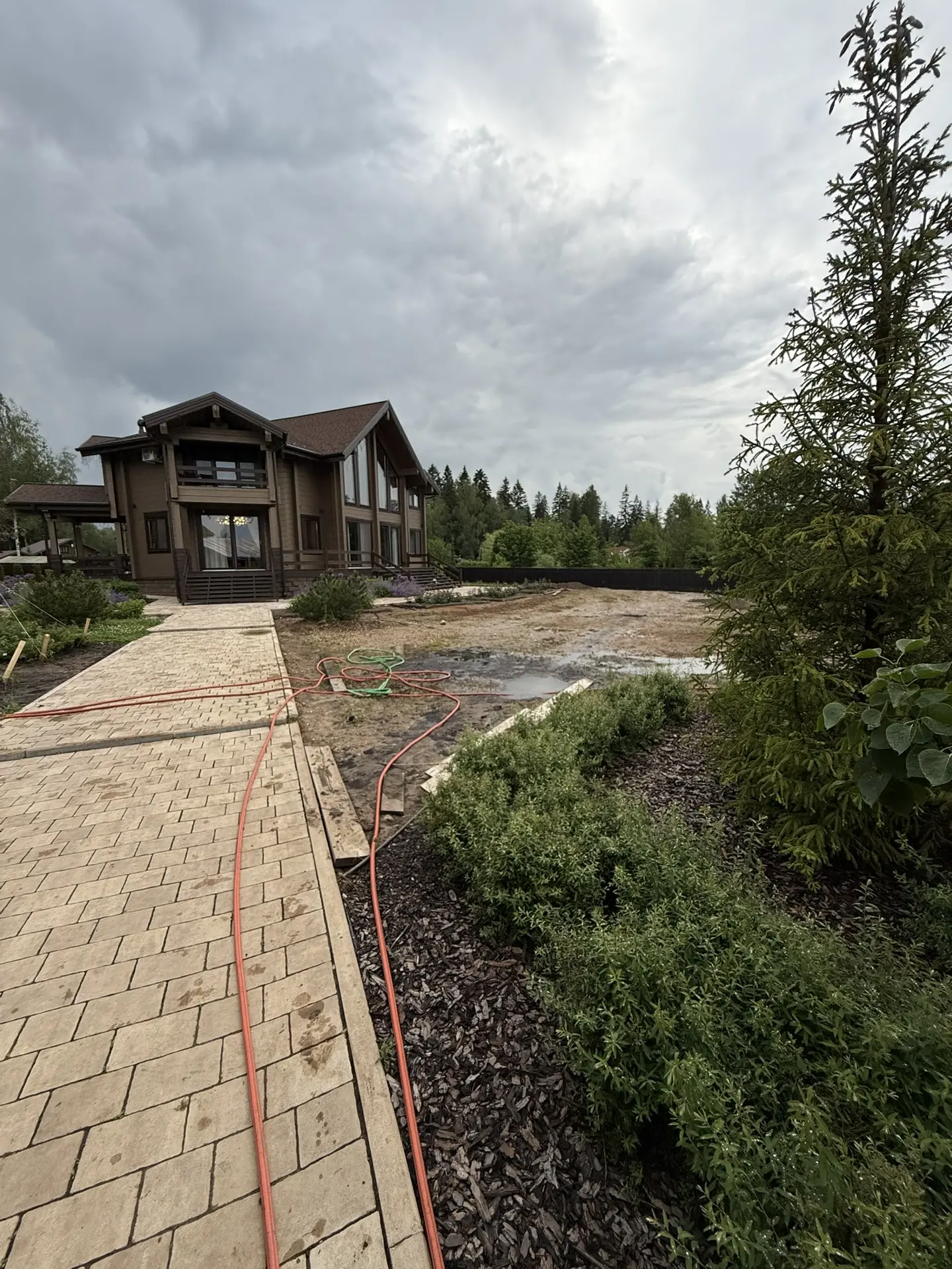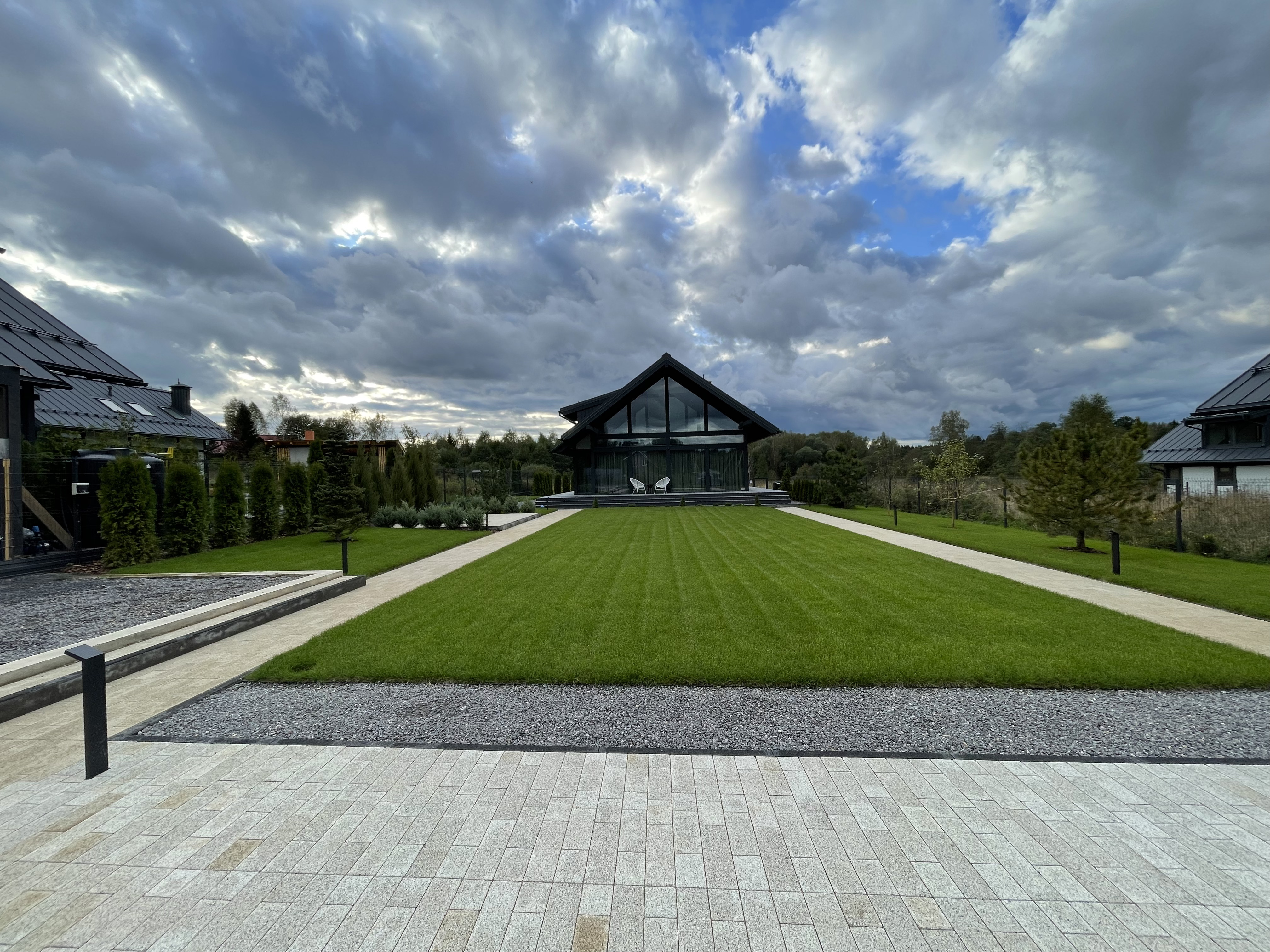 Газон вокруг дома и высадка деревьев. Дом на участке 1500 м²