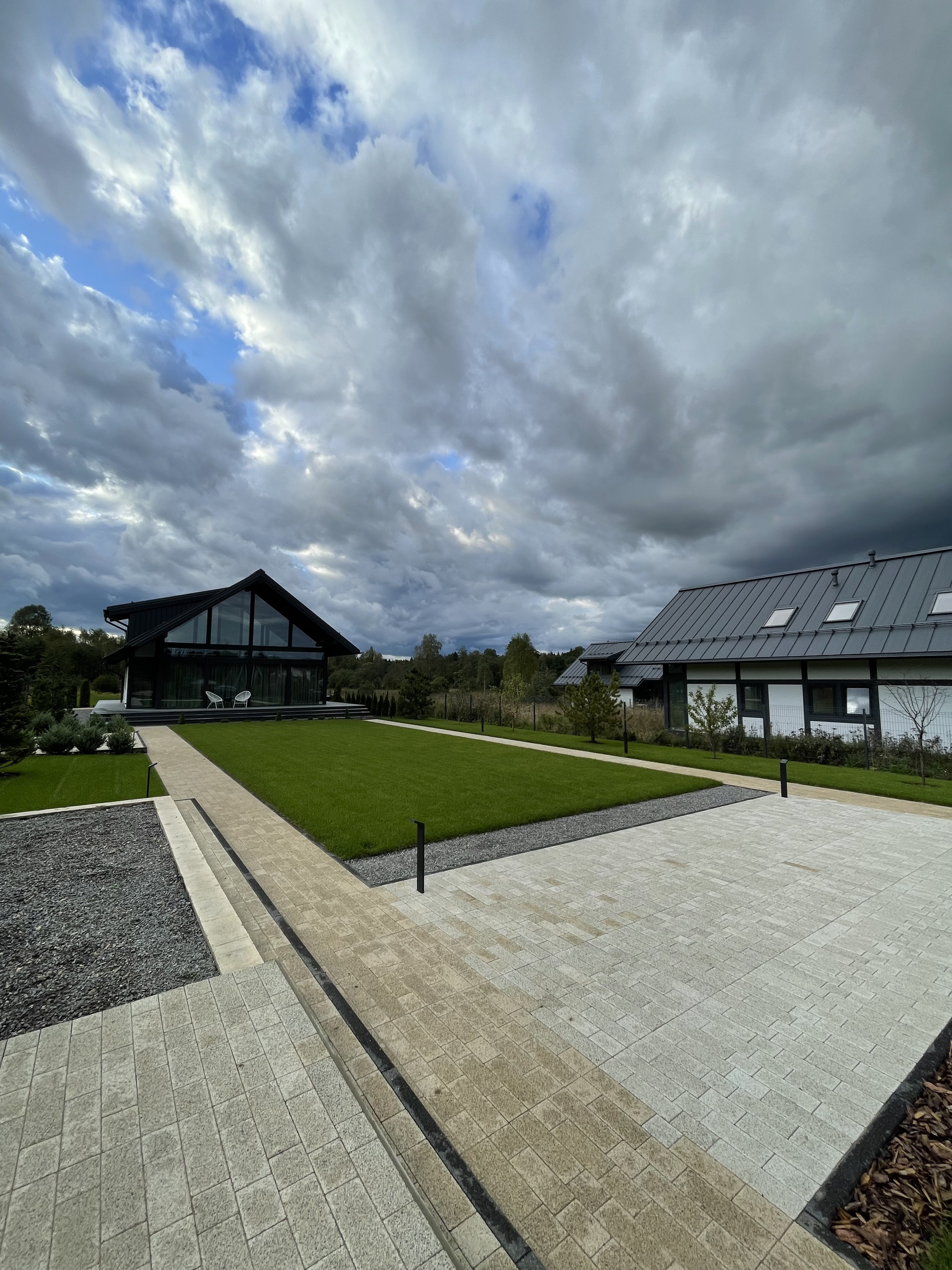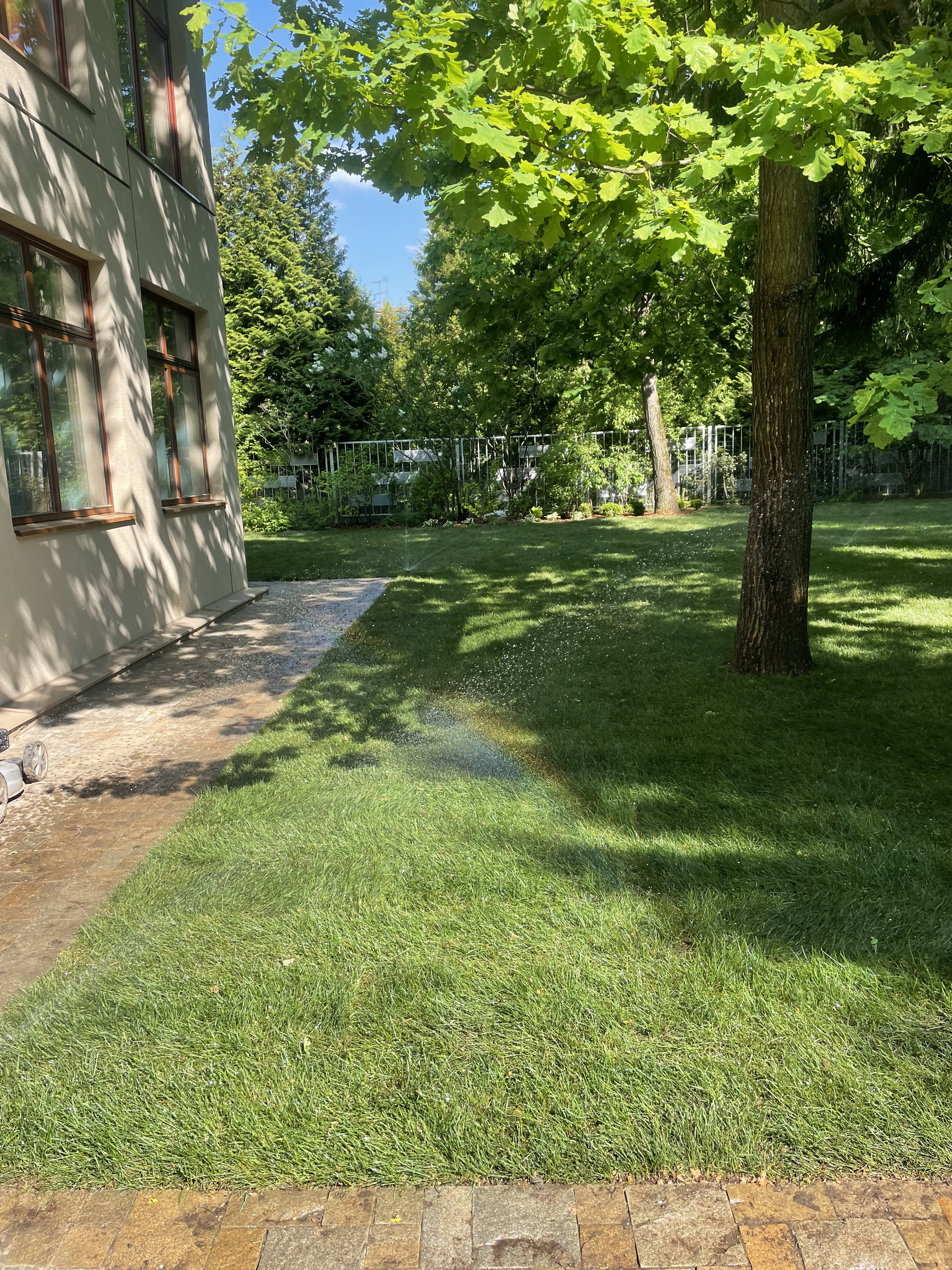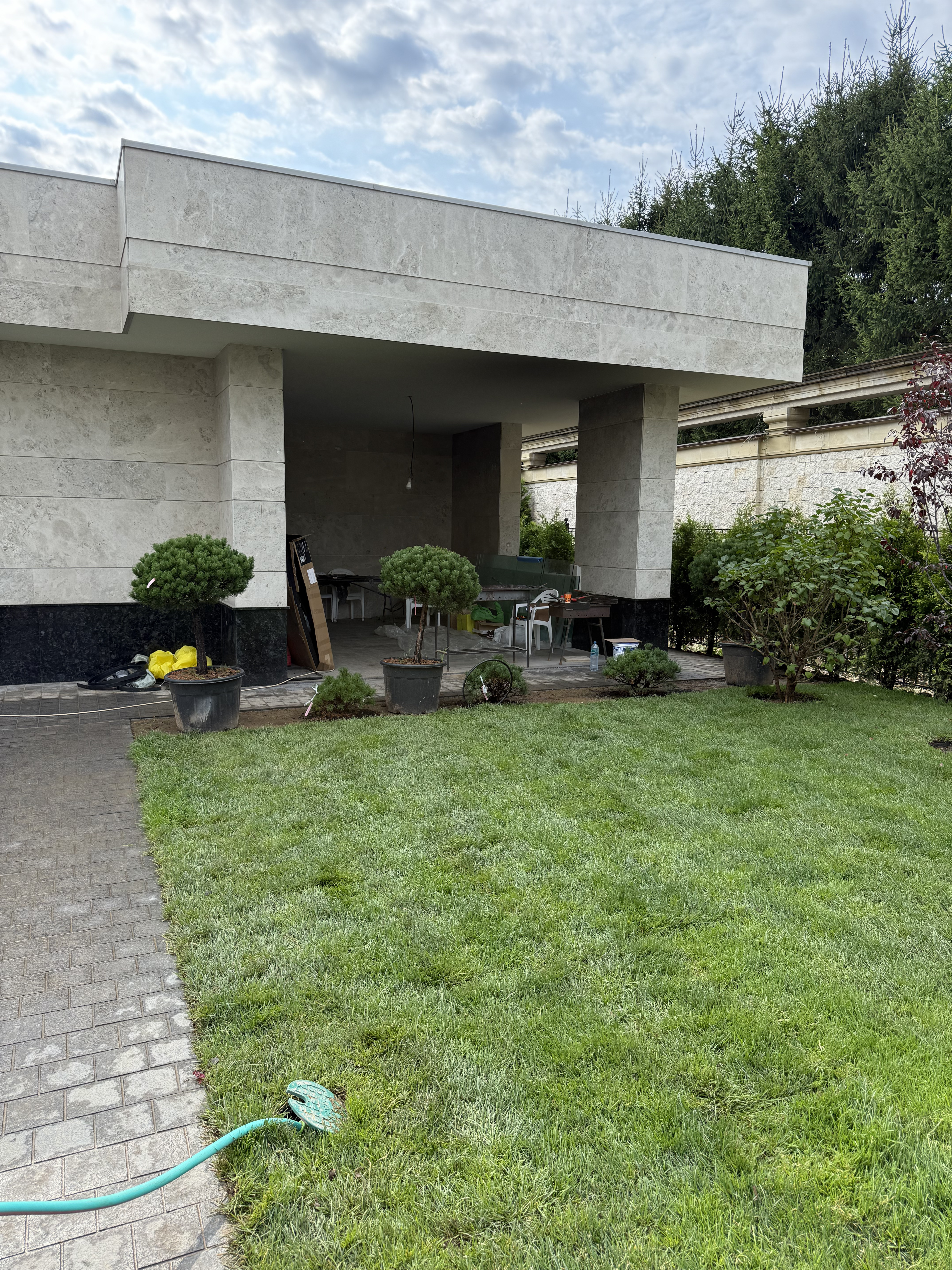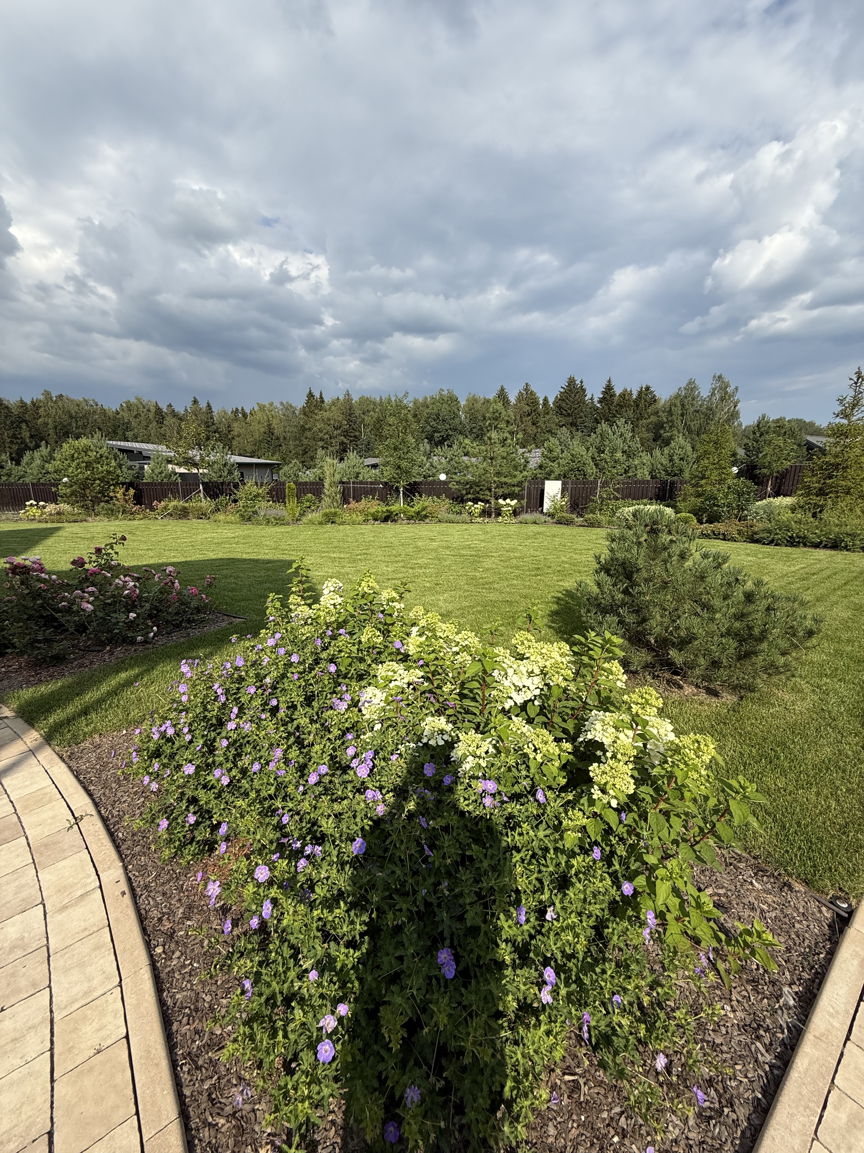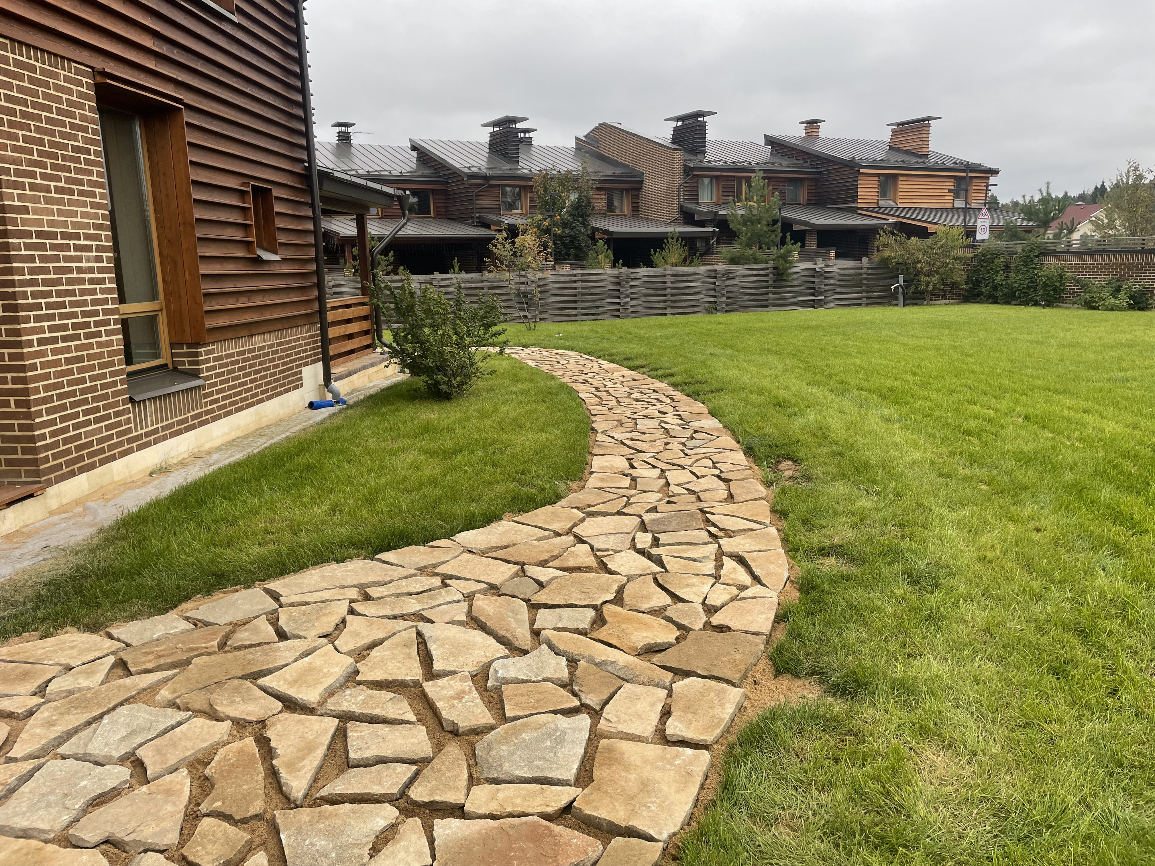 Газон вокруг дома и высадка деревьев. Дом на участке 1500 м²