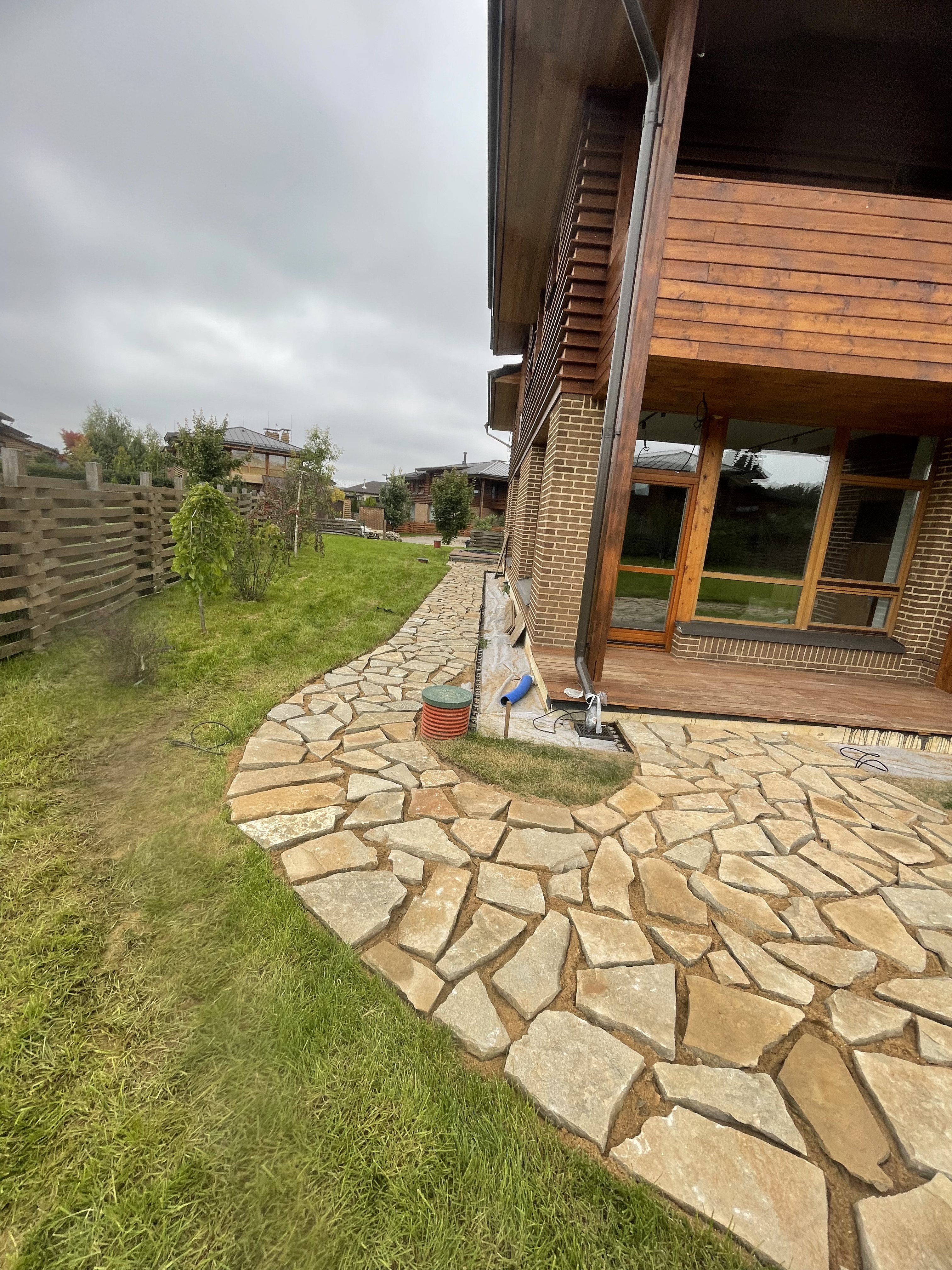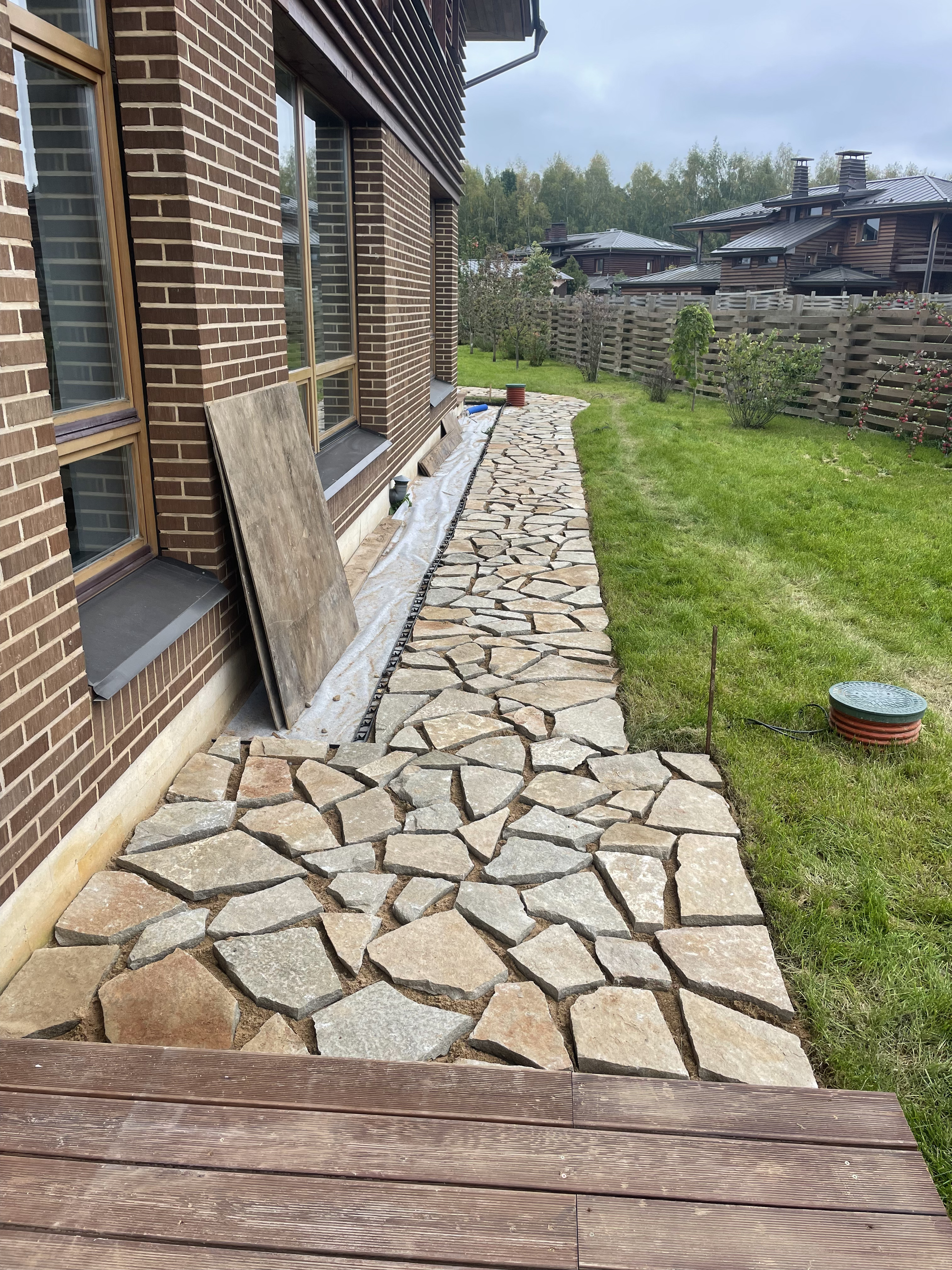 система, которая собирает дождевую и талую воду с крыш, дорожек и площадок, быстро отводит её от фундамента дома, предотвращает заболачивание территории и образование луж.