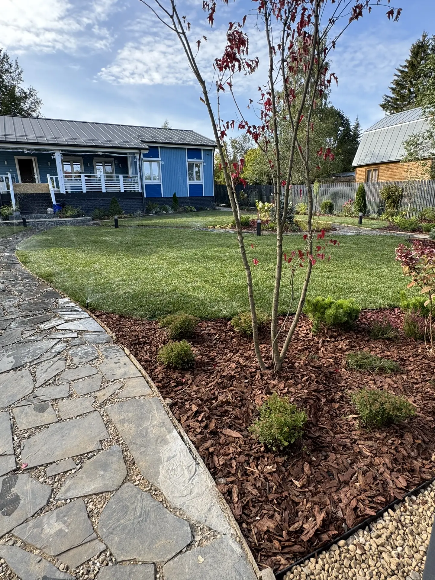 • Выполнен полный цикл работ по благоустройству участка