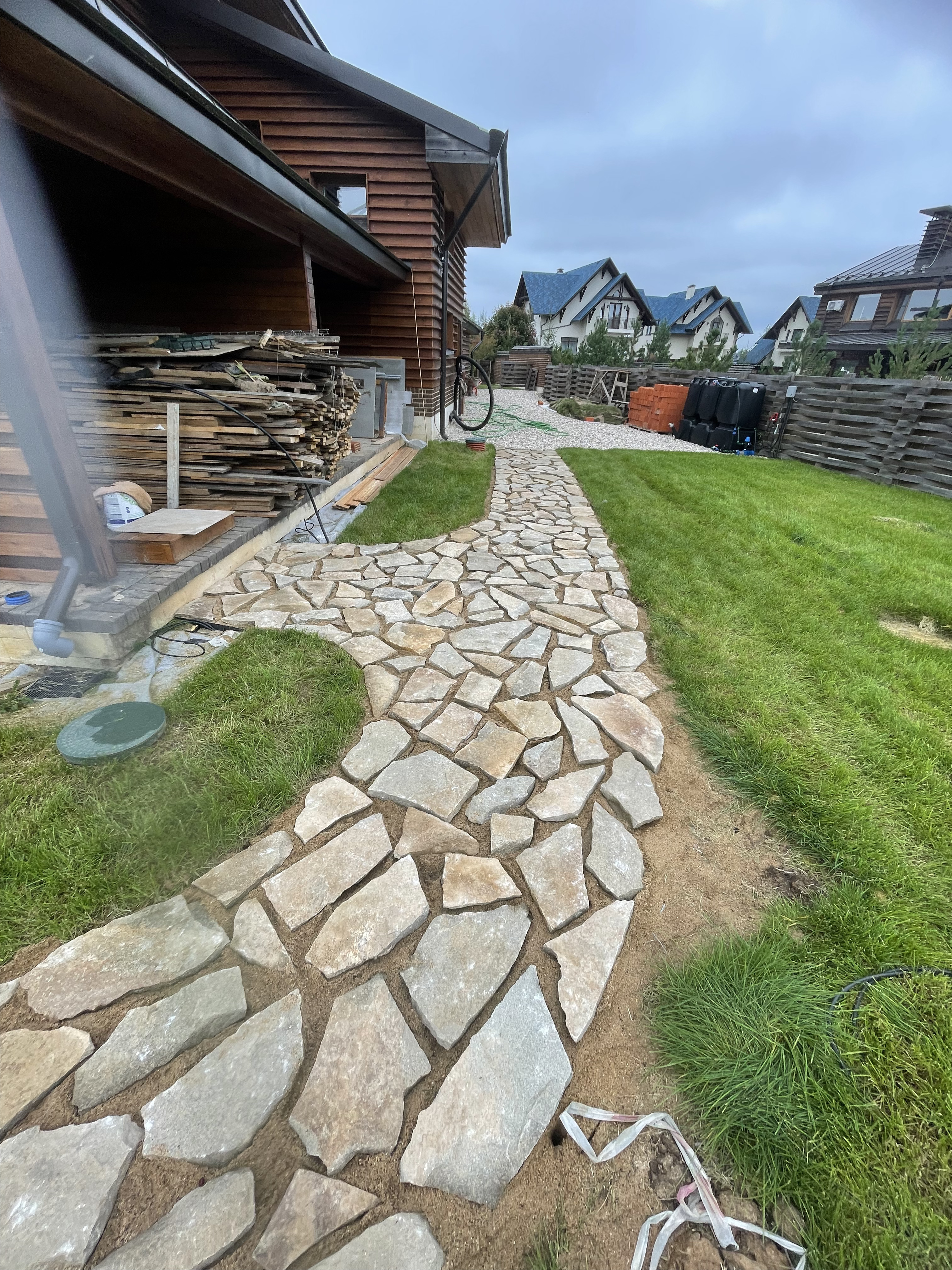 • Мощение дорожек и автоплощадки